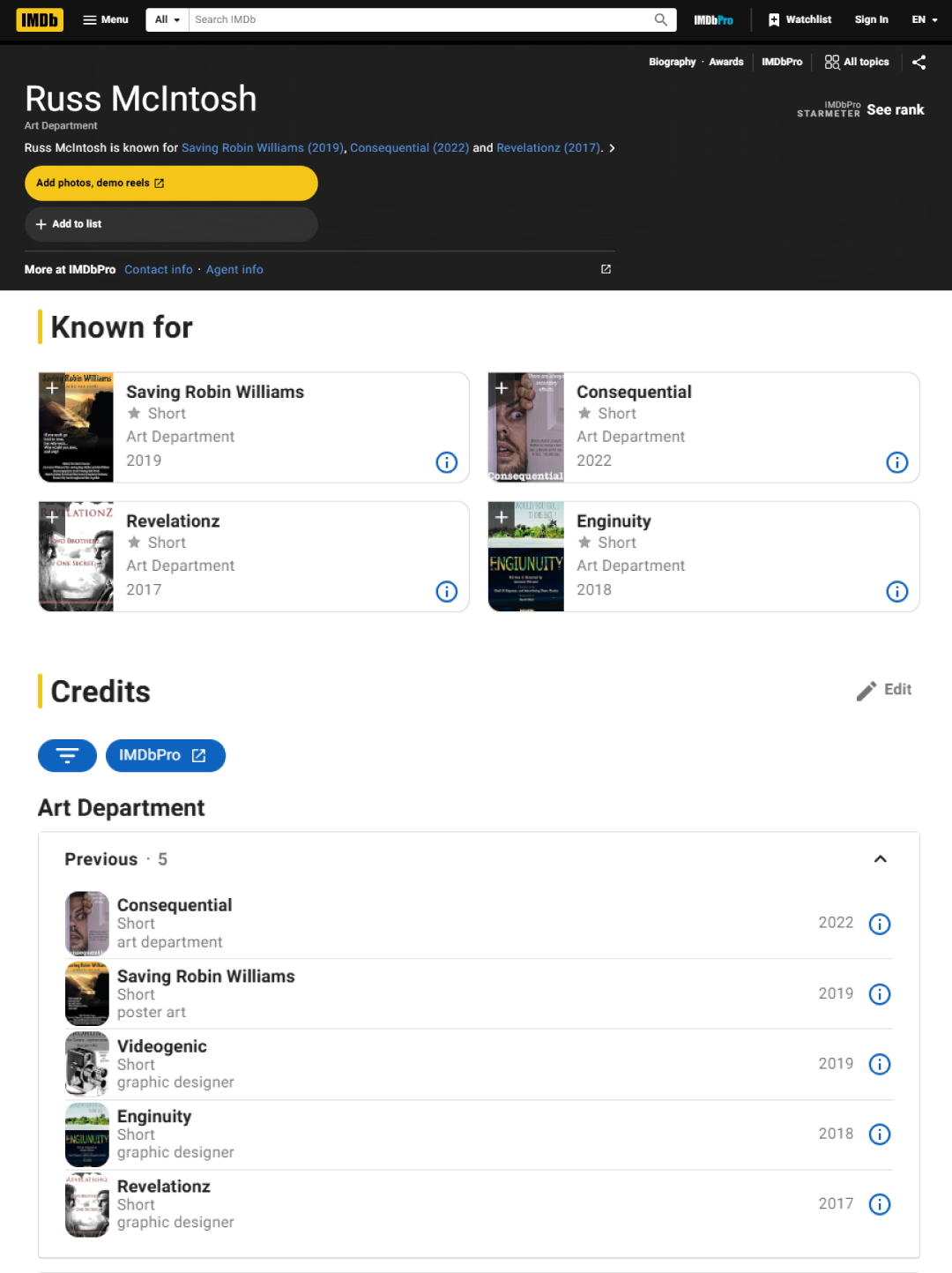 Did you know there are several movies that Russ Mcintosh was the Art Director for. If you have a creative project, I’m sure we can help!